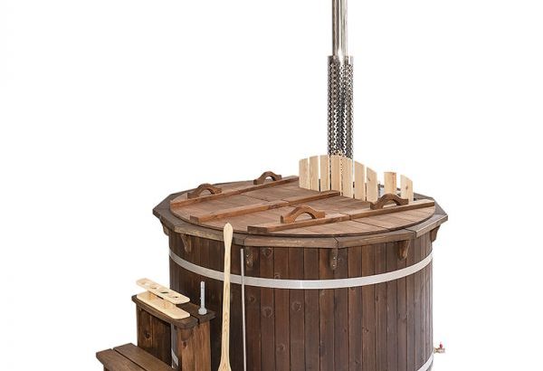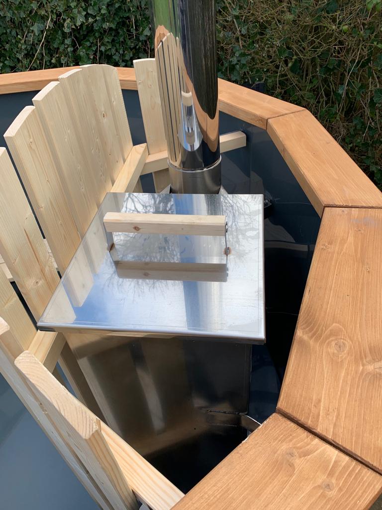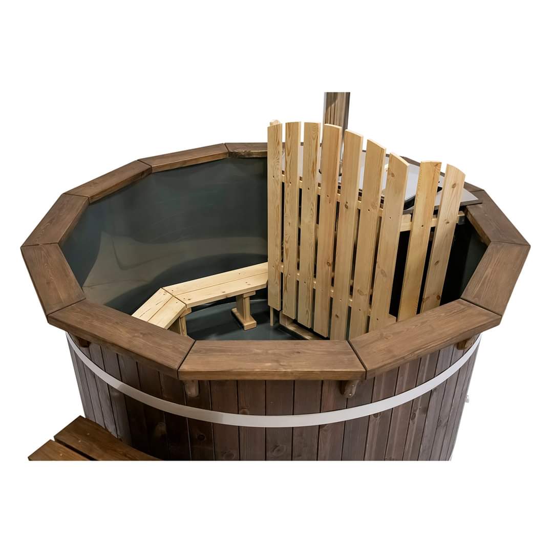 TRADITIONELE HOTTUB 180 CM MIT 8MM KUNSTOF INNEN-COCKPIT COMPLET MONTIERT AUF PALLETTE,
